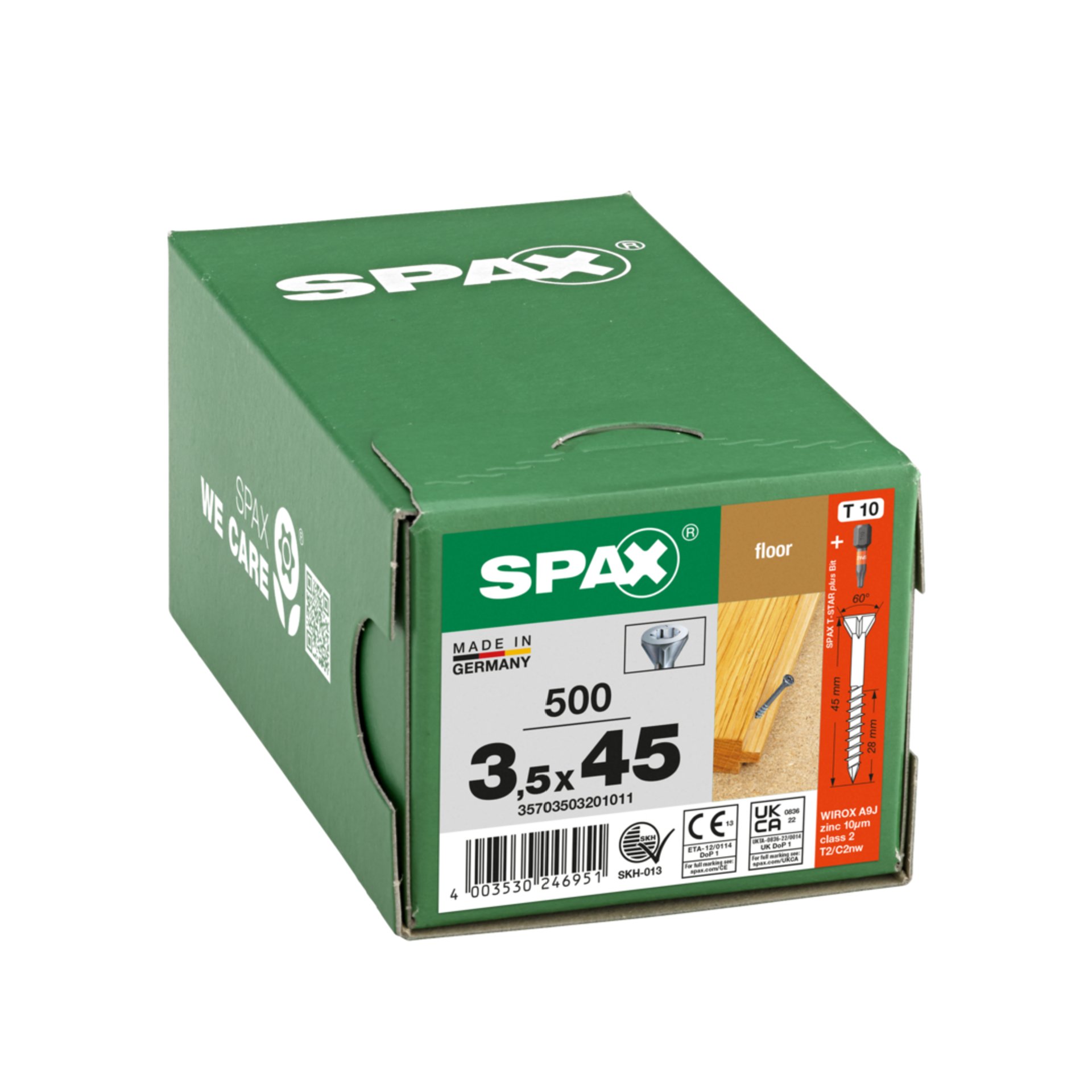 Produktinformationen "SPAX für Massivholz-Fußböden, 3,5 x 45 mm, 500 Stück, Teilgewinde, Senkkopf, T-STAR plus T10, CUT-Spitze, WIROX"