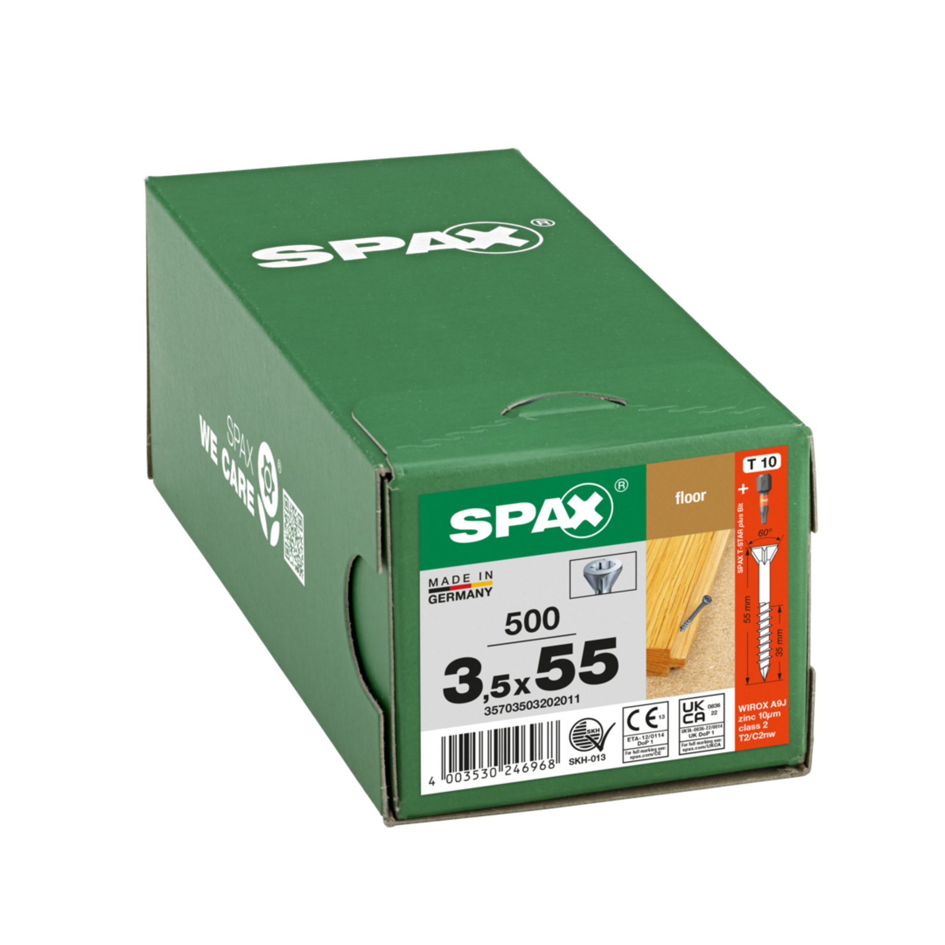 Produktinformationen "SPAX für Massivholz-Fußböden, 3,5 x 55 mm, 500 Stück, Teilgewinde, Senkkopf, T-STAR plus T10, CUT-Spitze, WIROX"