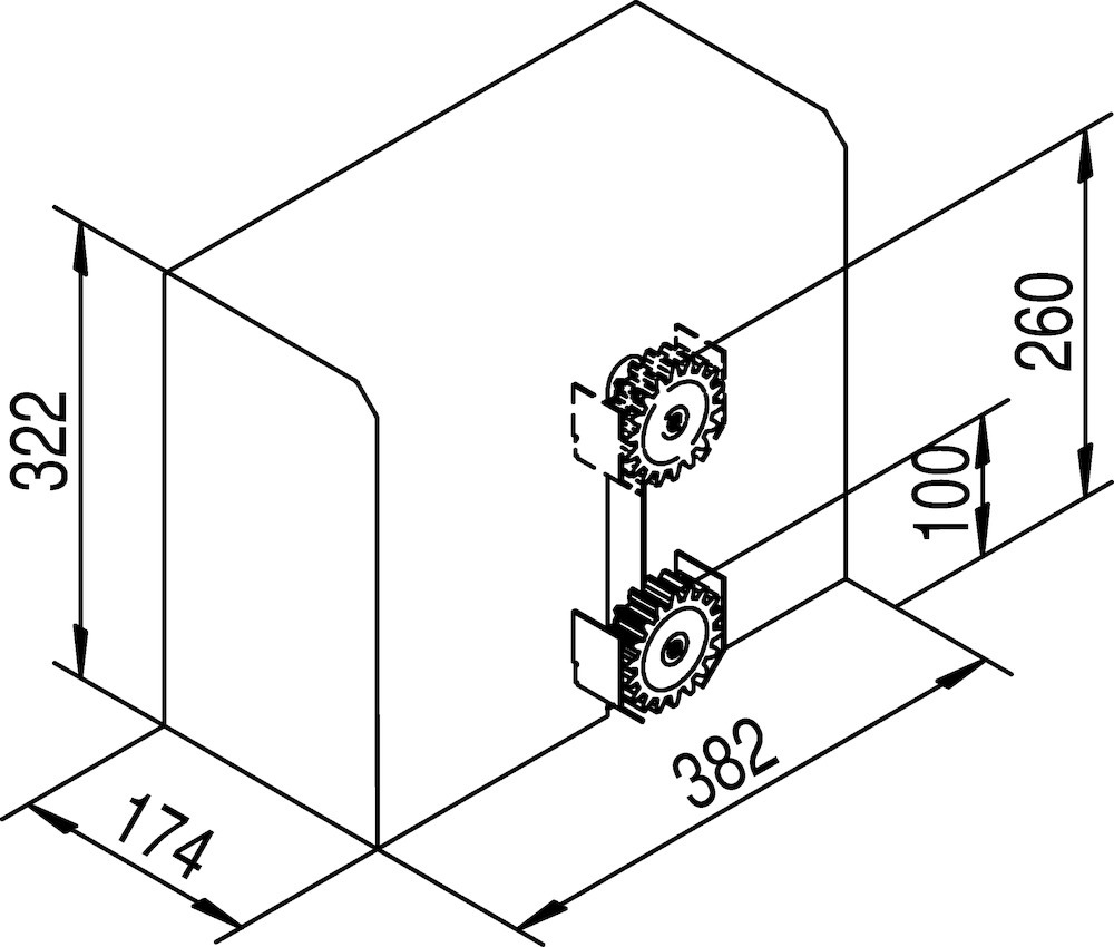 | Höhe Unterkante Gehäuse bis 1. Zahnrad: | 100.00 mm |