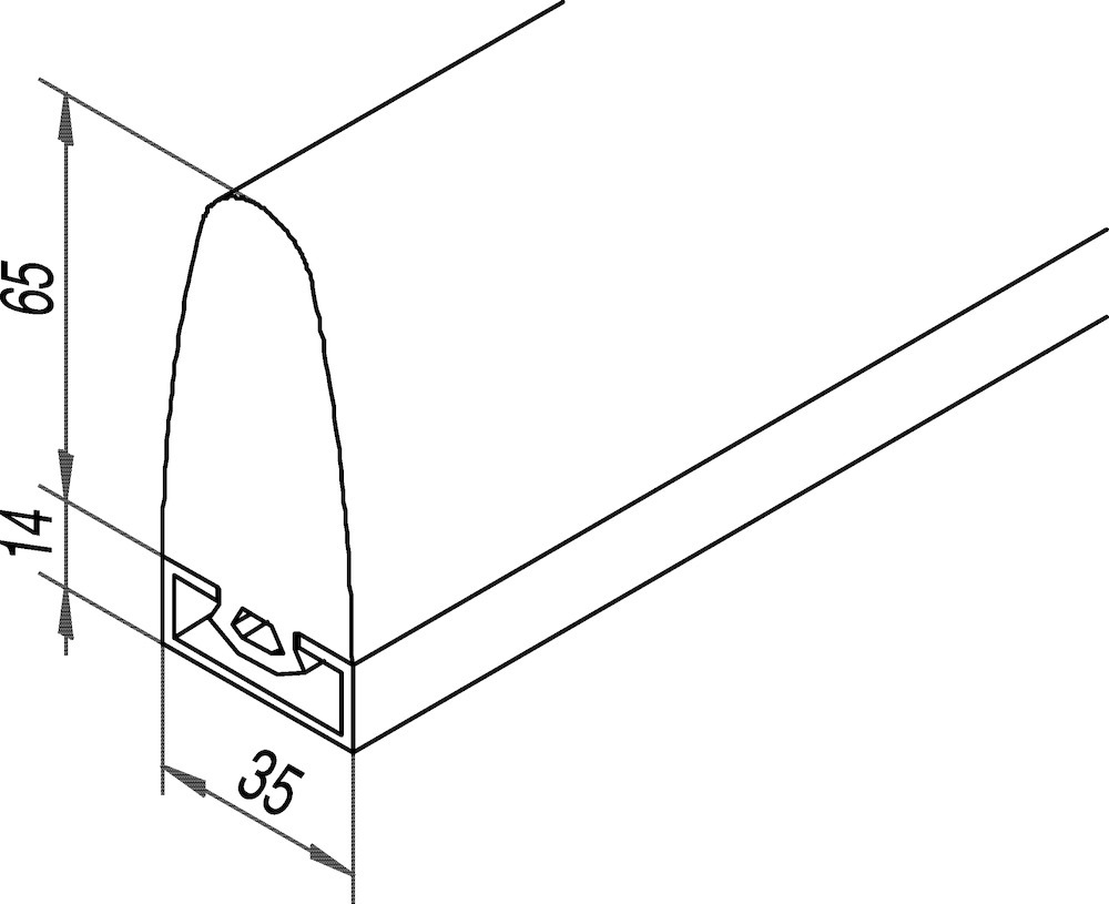 Eigenschaften "Schiebetor-Hauptschließkante, mit C-Schiene, Nr. 80, Gummi, Aluminium"