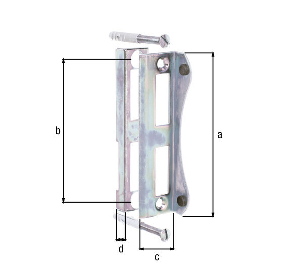 Set bestehend aus: je einem Unterteil, Anschlagwinkel und zwei Linsen-Senkkopfschrauben mit passenden Dübeln.