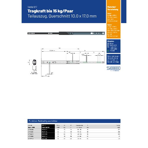 Eigenschaften "Schock Teilauszug 017, 15kg, RAL7016, Länge 246"