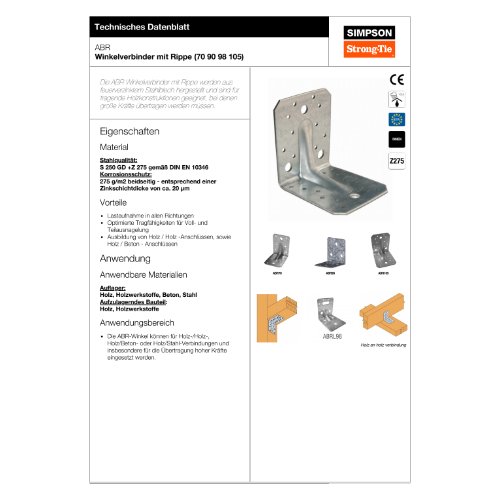 Eigenschaften "Simpson Winkelverbinder ABR105 105x105x90x3"