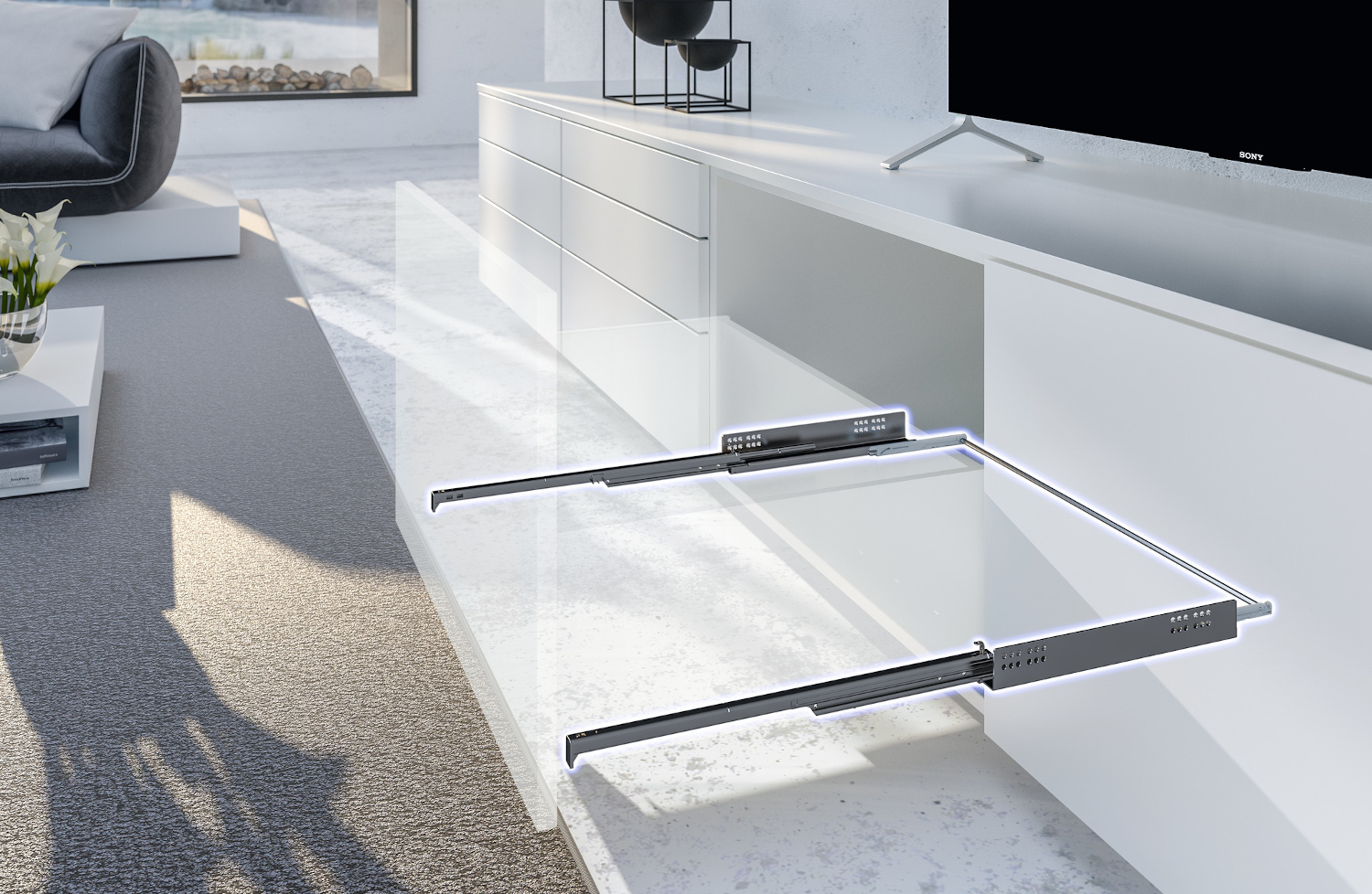 • Aufschiebemontage mit Schnäppern und werkzeugloser Höhenverstellung• Integrierter Öffnungsmechanismus Push to open• Optional: Synchronisation / Multi-Synchronisation • Optional: Schnäpper / Aufsteckhalter für Tablaranwendungen• Optional: Tablarbodenarretierung• Geeignet für Schubkästen mit Zargendicke bis 16 mm• Plattformkonzept: identische Korpus-, Schubkasten- und Blendenmaße bei Quadro Teil- und Vollauszugsführungen mit Aufschiebemontage• Belastbarkeit nach EN 15338, Level 3• Stahl verzinktHinweise:• Bei Einsatz von Schnäpper / Aufsteckhalter für Tablarböden verringert sich die Tablarbodenlänge um 12 mm (NL - 12 mm) Hettich Technical AssistantArtikeldaten 2D/3D (DWG/DXF)Schnittzeichnung 2D (DXF)Hettich CADBlätterkatalog Angaben gemäß Produktsicherheitsverordnung ((EU) 2023/998): Hersteller: Hettich Marketing- und Vertriebs GmbH & Co. KG Anton-Hettich-Straße 12-16 32278 Kirchlengern / Germany Telefon: +49 5733 / 798 - 0 eMail: info@hettich.com Web: www.hettich.com