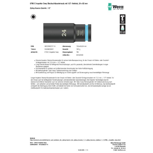 Produktinformationen "Wera 8790 C Impaktor Deep Steckschlüsseleinsatz mit 1/2"-Antrieb, 24 x"