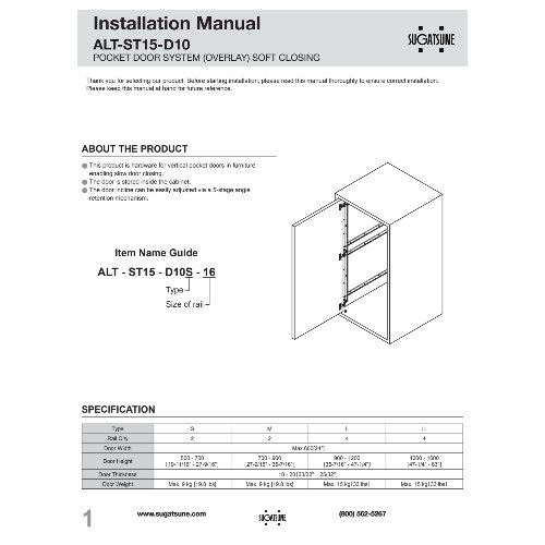 Eigenschaften "Sugatsune ALT-ST15-D10M-22 Einschiebbarer Schranktürbeschlag, aufliegend, Typ M"