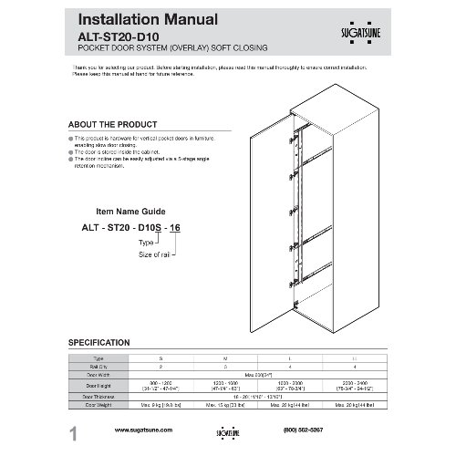Produktinformationen "Sugatsune ALT-ST20-D10S-19 Einschiebbarer Schranktürbeschlag, aufliegend, Typ S"