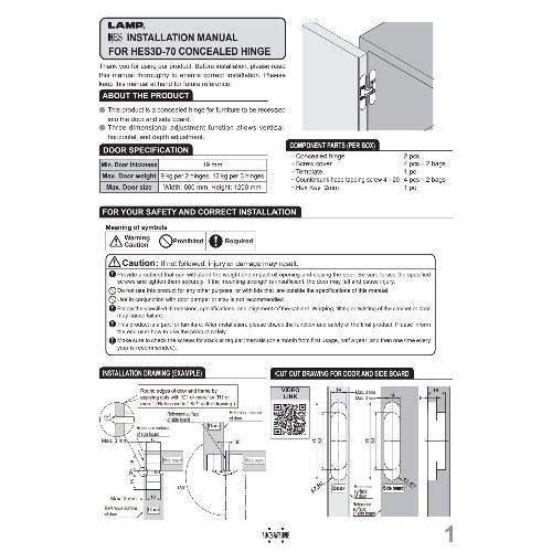 Eigenschaften "Sugatsune HES3D-70DC Scharnier für unsichtbaren Anschlag, 3D-verstellbar, Silber"