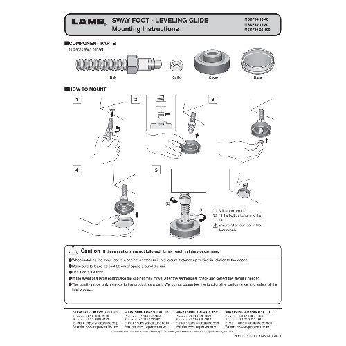 Eigenschaften "Sugatsune MDSF58-10-40 Nivelliergleiter mit Dämpfung, Set mit 4 Stk."