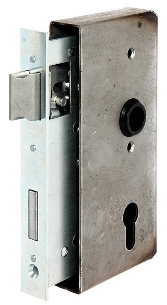 Eigenschaften "Tor-Schlosskasten, m.verz.Schloss, Profilzylinder gelocht,D55,E72,VK8, 30 kantig"