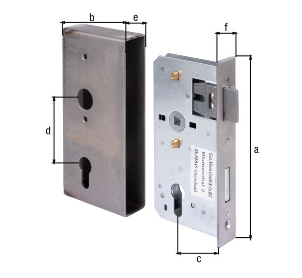 | Variante: | Gustav Alberts Tor-Schlosskasten, m.verz.Schloss, Profilzylinder gelocht,D55,E72,VK8, 34 kantig |