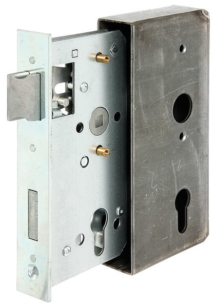 Eigenschaften "Tor-Schlosskasten, m.verz.Schloss, Profilzylinder gelocht,D55,E72,VK8, 34 kantig"