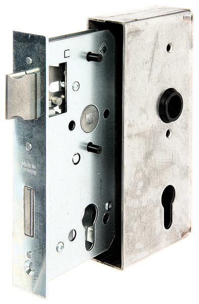 Eigenschaften "Tor-Schlosskasten, m.verz.Schloss, Profilzylinder gelocht,D55,E72,VK8, 40 kantig"