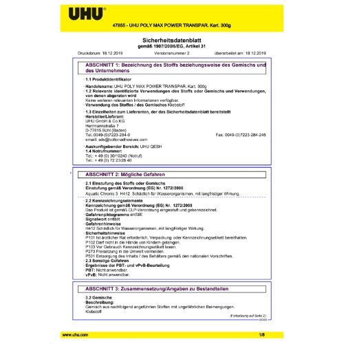 Produktinformationen "UHU POLY MAX GLASKLAR Power Kartusche 300g"