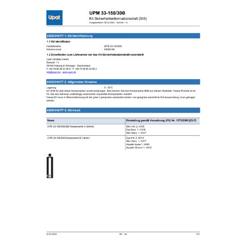 Eigenschaften "UPAT Injektionsmörtel BOX UPM 33-300 HWK klein"