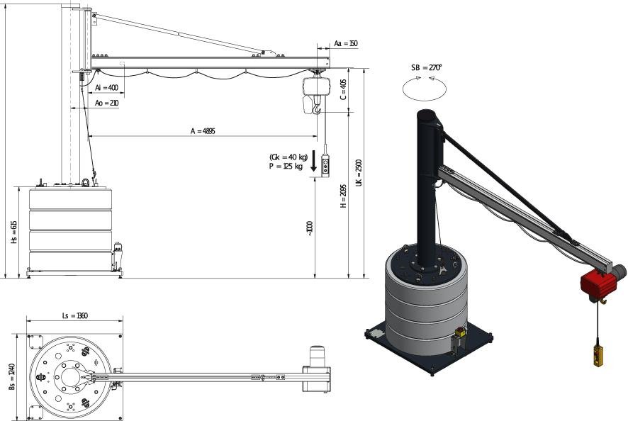 Variante: VETTER Krantechnik Mobiler Säulenschwenkkran125kg,4,9m,270 MOBILUS+Elektrokettenzug MOB12-US1,25-4,9