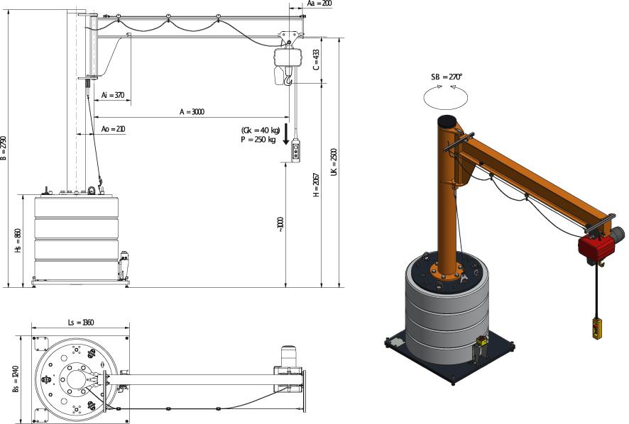 | Variante: | VETTER Krantechnik Mobiler Säulenschwenkkran250kg,3,0m,270 MOBILUS+Elektrokettenzug MOB12-AS2,5-3,0 |