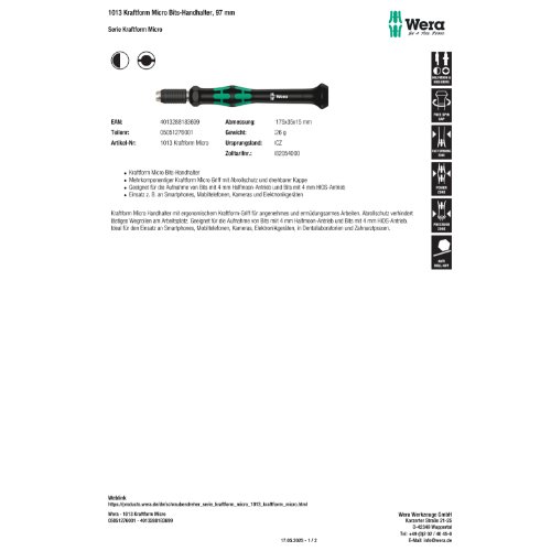 Variante: | Wera 1013 Kraftform Micro Bits-Handhalter, 97 mm |