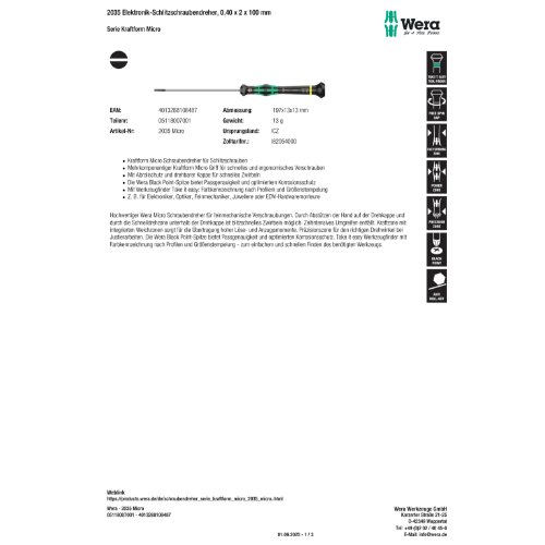 Variante: | Wera 2035 Elektronik-Schlitzschraubendreher, 0,40 x 2 x 100 mm |