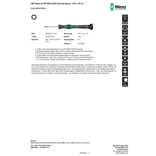 Variante: | Wera 2067 Elektronik IPR TORX PLUS Schraubendreher, 1 IPR x 40 mm |