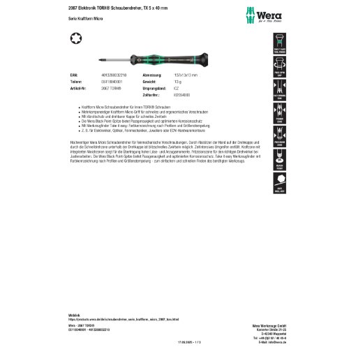 Variante: | Wera 2067 Elektronik TORX Schraubendreher, TX 5 x 40 mm |