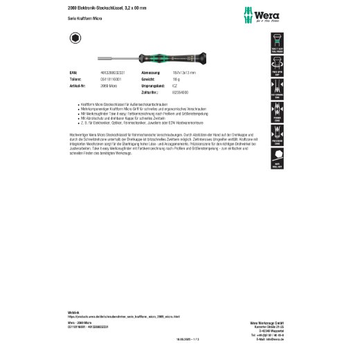 hex, Kraftform, Set, Micro, nutsetter, set, Wera, micro, Take-it-easy-Werkzeugfinder, Sechskant, kraftform, Steckschlüssel, "Take-it-easy"-Tool-Finder, 05118116001, 442347, 4013288032331, 2069 Elektronik-Steckschlüssel, 3,2 x 60 mm