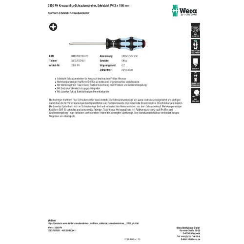 Variante: | Wera 3350 PH Kreuzschlitz-Schraubendreher, Edelstahl, PH 2 x 100 mm |