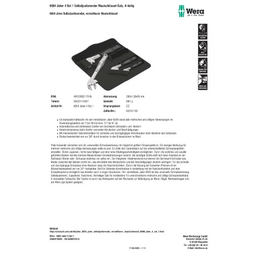 Produktinformationen "Wera 6004 Joker 4 Set 1 Selbstjustierender Maulschlüssel-Satz, 4-teilig"