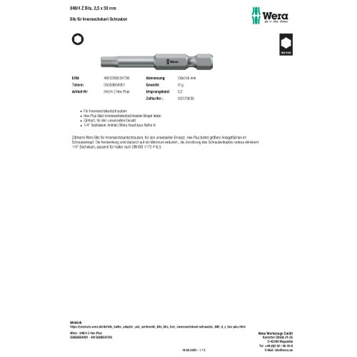 | Variante: | Wera 840/4 Z Bits, 2,5 x 50 mm |