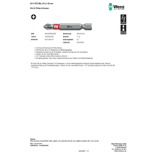 Variante: | Wera 851/4 BTZ Bits, PH 2 x 50 mm |