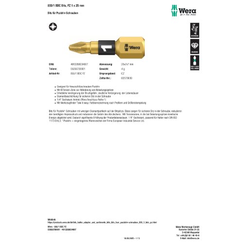 Produktinformationen "Wera 855/1 BDC Bits, PZ 1 x 25 mm"