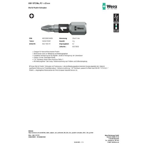 Wera 855/1 BTZ Bits, PZ 1 x 25 mm