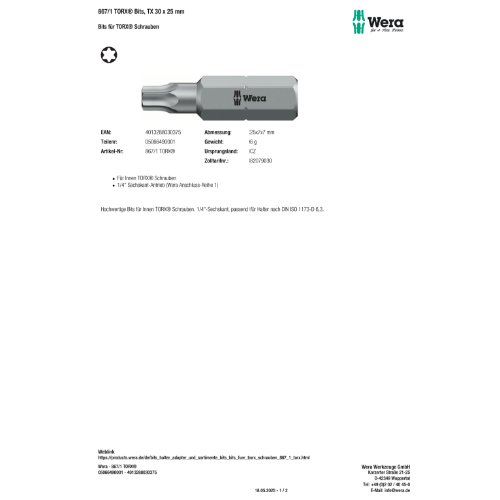 https://shop.heesundpeters.com/Wera-867-1-TORX-Bits-TX-25-x-25-mm/123122