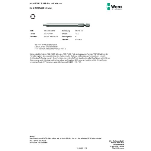 Variante: | Wera 867/4 IP TORX PLUS Bits, 20 IP x 89 mm |