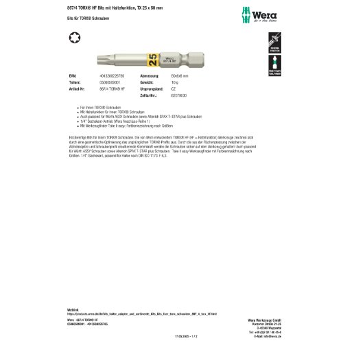 Variante: | Wera 867/4 TORX HF Bits mit Haltefunktion, TX 25 x 50 mm |