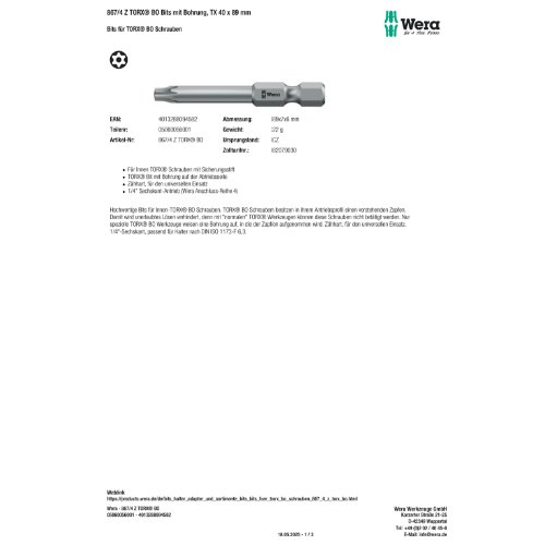 Variante: | Wera 867/4 Z TORX BO Bits mit Bohrung, TX 40 x 89 mm |