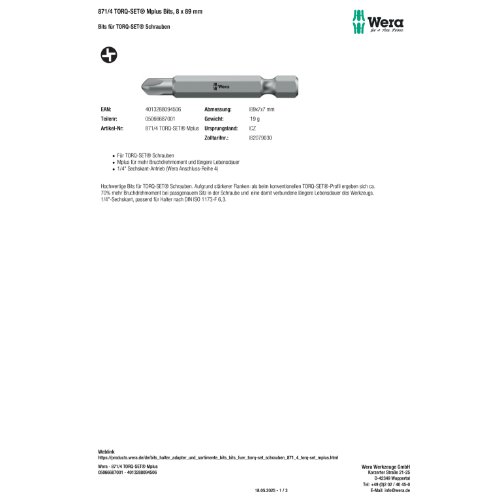 Hersteller: Wera Werkzeuge GmbH, Korzerter Straße 21-25, D- 42349 Wuppertal