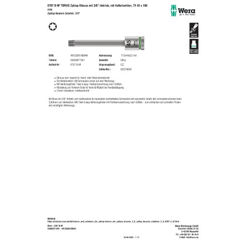 Hersteller: Wera Werkzeuge GmbH, Korzerter Straße 21-25, D- 42349 Wuppertal