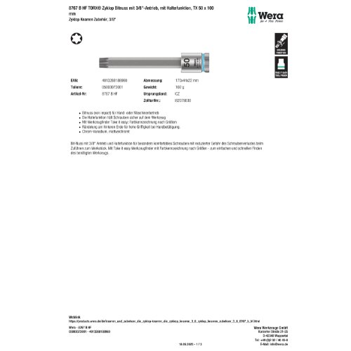 Hersteller: Wera Werkzeuge GmbH, Korzerter Straße 21-25, D- 42349 Wuppertal