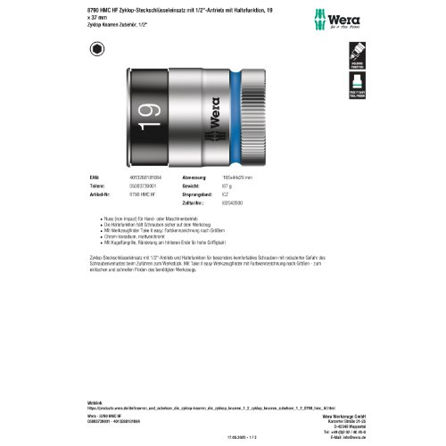 https://shop.heesundpeters.com/Wera-8790-HMC-HF-Zyklop-Steckschluesseleinsatz-mit-1-2-Antrieb-mit-Haltefunktion-19-x-37-mm/441935