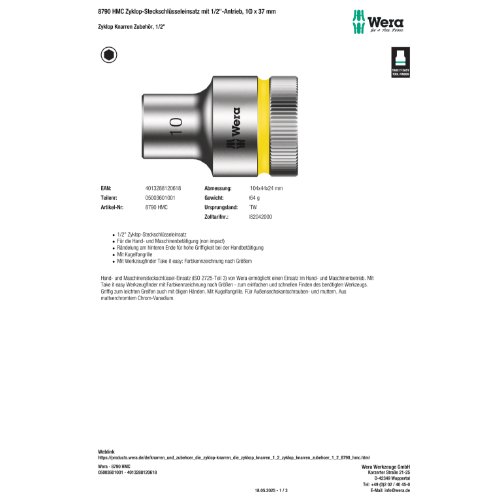 Variante: | Wera 8790 HMC Zyklop-Steckschlüsseleinsatz mit 1/2"-Antrieb, 10 x 37 m |