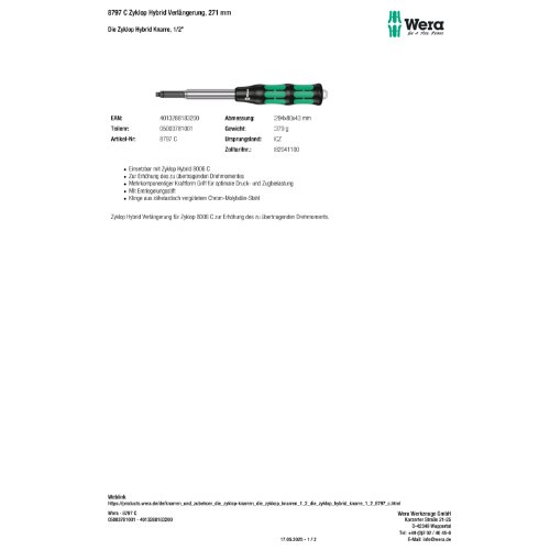 Produktinformationen "Wera 8797 C Zyklop Hybrid Verlängerung, 271 mm"