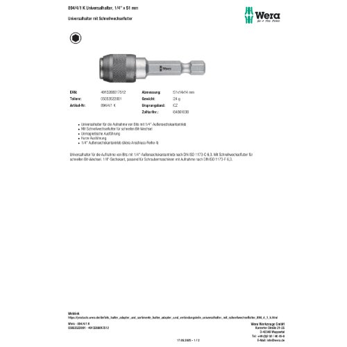 | Variante: | Wera 894/4/1 K Universalhalter, 1/4" x 51 mm |