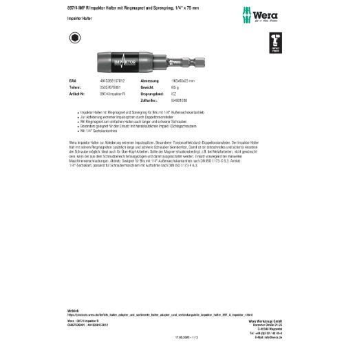 Variante: | Wera 897/4 IMP R Impaktor Halter mit Ringmagnet und Sprengring, 1/4" x |