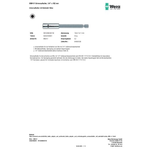Variante: | Wera 899/4/1 Universalhalter, 1/4" x 152 mm |