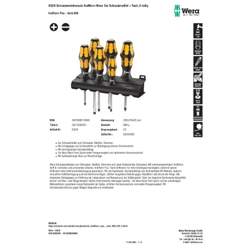 Variante: | Wera 932/6 Schraubendrehersatz Kraftform Wera: Der Schraubmeißel + Rack, 6- |