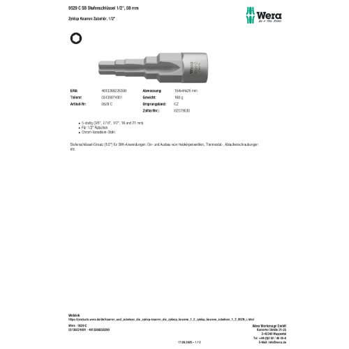Hersteller: Wera Werkzeuge GmbH, Korzerter Straße 21-25, D- 42349 Wuppertal