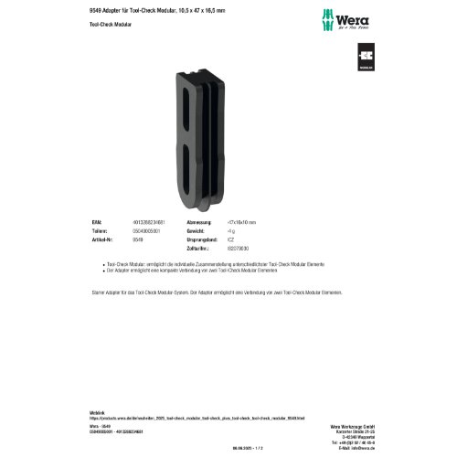 Produktinformationen "Wera 9549 Adapter für Tool-Check Modular, 10,5 x 47 x 16,5 mm"