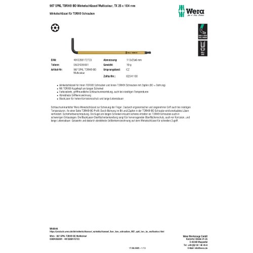 Hersteller: Wera Werkzeuge GmbH, Korzerter Straße 21-25, D- 42349 Wuppertal