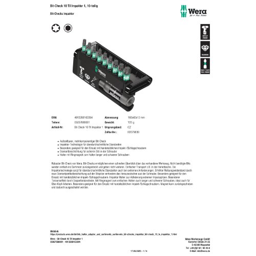 Produktinformationen "Wera Bit-Check 10 TX Impaktor 1, 10-teilig"
